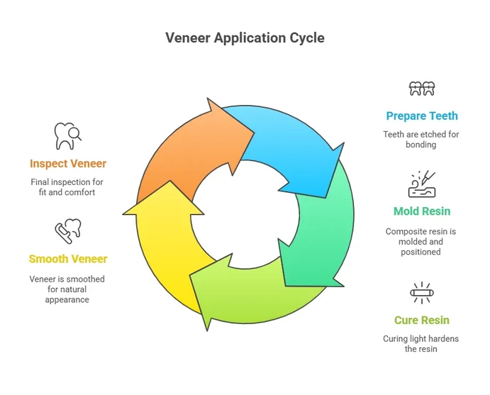 - The dentist then smooths out the veneer to be even and naturally appearing.