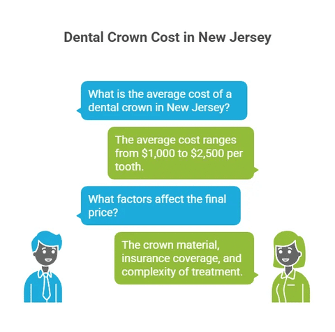 In New Jersey, the average dental crown cost typically ranges from $1,000 to $2,500 per tooth. The final price depends on: